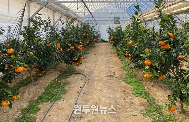 생산 농가는 사업비 1억원을 지원받아 약 300평 규모 2연동 시설하우스에서 레드향 190주를 식재해 재배해왔다. 시설하우스는 겨울철 저온 피해를 최소화하기 위해 다겹보온커튼을 도입하는 등 안정적인 생육 환경을 갖췄다.