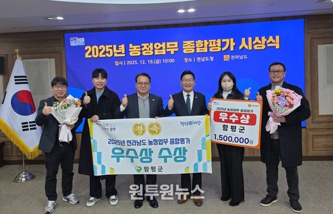 함평군은 지난 19일 전라남도청 서재필실에서 열린 2025년 전남 농정업무 종합평가에서 우수상을 수상했다고 22일 밝혔다.