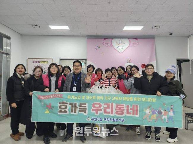(원투원뉴스) 아산시 온양5동은 지난 19일, 온양5동 여성자원봉사단이 저소득 독거노인 및 취약계층을 위한 물품 나눔 사업 ‘효가득 우리동네’를 성공적으로 마무리했다고 밝혔다.