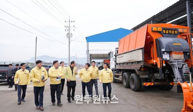 김광용 본부장은 안성시 제설 전진기지를 찾아 제설제 비축 현황과 제설 장비 가동 상태 등 겨울철 대설 대응 준비 상황을 직접 확인하고 강설 시 신속하고 체계적인 현장 대응이 이뤄질 수 있도록 철저한 대비를 당부했다.