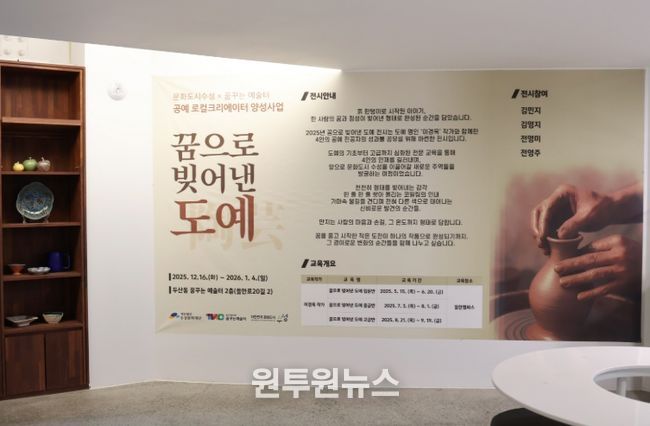 (원투원뉴스) 대구 수성문화재단 문화도시센터는 지난 16일부터 다음 달 4일까지 수성구 문화도시 조성사업의 일환으로 추진한 2025년 공예 로컬 크리에이터 양성사업의 성과를 집약한 ‘꿈으로 빚어낸 도예’ 전시회를 개최한다고 밝혔다.