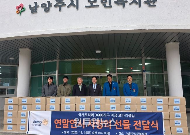(원투원뉴스) 남양주시는 지난 19일 남양주시노인복지관이 국제로타리 3600지구 미금로타리클럽과 함께 ‘연말연시 사랑의 선물’ 전달식을 개최하고, 관내 홀몸 어르신들을 위한 식료품 키트 120박스를 후원받았다고 밝혔다.