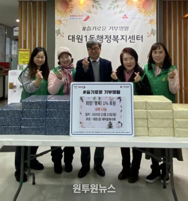 한편, 대원1동 새마을부녀회는 평소에도 취약계층 지원과 지역 나눔 활동에 적극 참여하며, 이웃과 함께하는 따뜻한 공동체 조성에 앞장서고 있다.