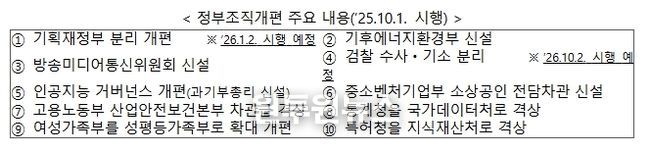 먼저, 정부조직개편은 특정 부처에 집중된 기능과 권한을 재배치하고, 기후 변화, AI 대전환 등 미래 위기에 선제적으로 대응하기 위해 기획재정부 분리 개편, 기후에너지환경부 신설 등을 중심으로 추진했다.