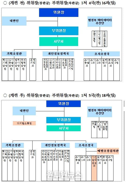 개인정보위는 선제적 위험 식별과 예방 점검 기능을 전담하는 예방조정심의관(고위공무원 나급), 사전실태점검과(7명)를 신설한다.