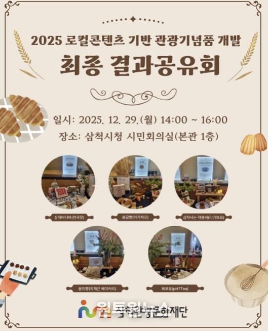 (원투원뉴스) 삼척관광문화재단은 '2025 로컬콘텐츠 기반 관광기념품 개발 최종 결과공유회'를 개최하고, 녩로컬콘텐츠 기반 관광기념품 개발’사업을 통해 선정·개발된 관광기념품의 성과를 공유할 계획이라고 밝혔다.