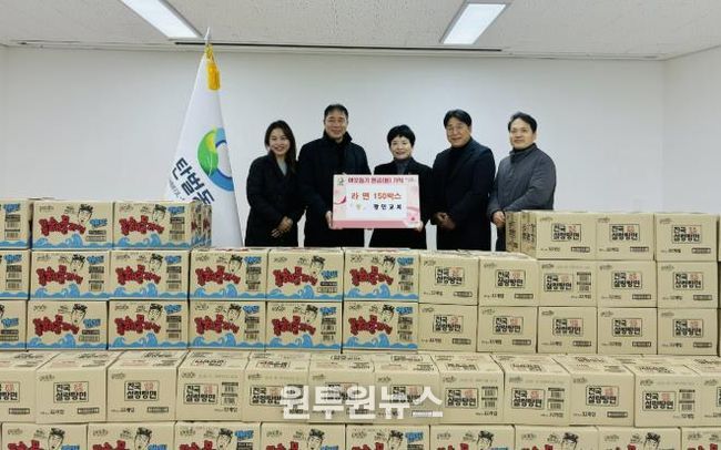 (원투원뉴스) 광주 광민교회는 지난 23일 탄벌동 행정복지센터를 방문해 연말연시 소외된 이웃을 돕기 위한 라면 150박스를 기탁했다.