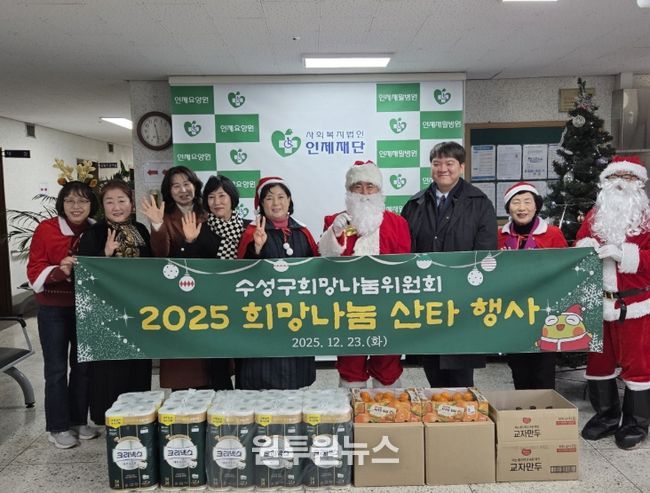(원투원뉴스) 대구 수성구희망나눔위원회(회장 배영호)는 크리스마스를 앞둔 지난 23일 관내 이웃들에게 사랑과 희망을 전하는 ‘2025 희망 나눔 산타 행사’를 개최해 지역사회의 훈훈한 연말 분위기 조성에 앞장섰다.