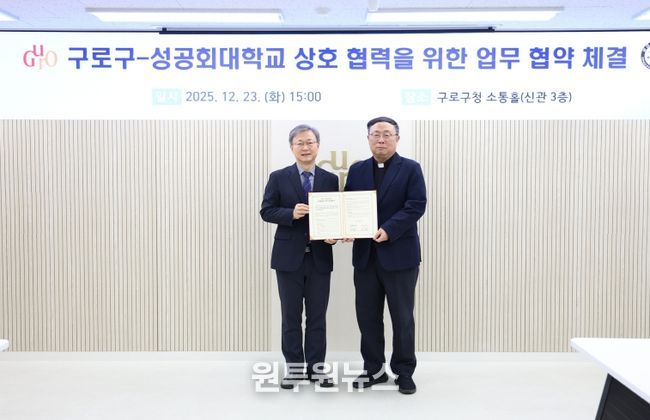 (원투원뉴스) 구로구는 12월 23일 구청 소통홀에서 성공회대학교와 상호협력을 위한 업무협약을 체결했다고 밝혔다.