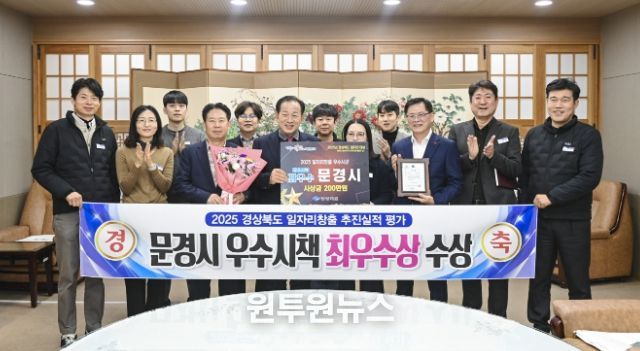 (원투원뉴스) 문경시는 23일 안동 그랜드호텔에서 열린 ‘2025년 경상북도 일자리창출 추진실적 평가’에서 작년에 이어 2년 연속 우수시책 부문 최우수상을 수상하는 쾌거를 올렸다.