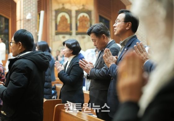 앞서 24일 오후 8시에는 천주교 제주교구 주교좌 중앙성당에서 문창우 비오 주교가 주례한 성탄 대축일 밤미사에 참석해 신도들과 함께 예수 그리스도의 탄생을 기념했다.