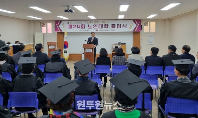 (원투원뉴스) 울산 동구는 12월 26일 오후 2시 울산광역시 동구 노인회관 2층 강당에서 대한노인회 울산광역시 동구지회 부설 노인대학 제24회 졸업식을 개최했다.