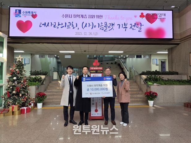 (원투원뉴스) 더사랑의교회가 설립한 사회복지법인 ‘이음플랫’이 “취약계층 지원을 위해 사용해달라”며 26일 1000만 원을 수원시에 기부했다. 기부금은 사회복지공동모금회에 지정기탁 방식으로 수원시 취약계층 지원에 사용할 예정이다.