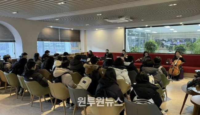 주요 내용은 △음악예술 및 앙상블 구성의 이해 △연주 곡별 테마 해설 △세미클래식 및 영화 OST, K-POP 클래식 편곡 버전 등 학생 눈높이에 맞춘 다양한 장르의 연주로 구성됐다. 이를 통해 어렵게 느껴질 수 있는 클래식 음악을 쉽고 흥미롭게 접할 수 있도록 기획했다.