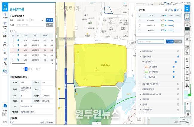 이와 함께 서울시 소유 공공토지 자원을 DB로 연계해 전직원이 열람·공유할 수 있도록 시스템을 구축했다.