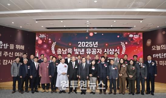 도는 29일 도청 대회의실에서 김태흠 지사와 수상자 등 100여 명이 참석한 가운데 2025년 충남을 빛낸 유공자 시상식을 개최했다.