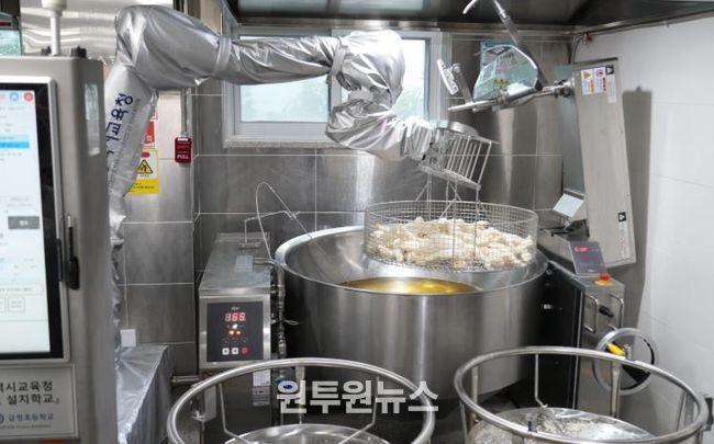부산교육청은 한국로봇산업진흥원이 주관하는 ‘2025년 서비스로봇 실증사업’에 지난 5월 최종 선정돼 국비 지원을 받았으며, 이를 바탕으로 올해 2학기부터 학교급식실에 조리로봇을 도입해 본격 운영에 들어갔다.