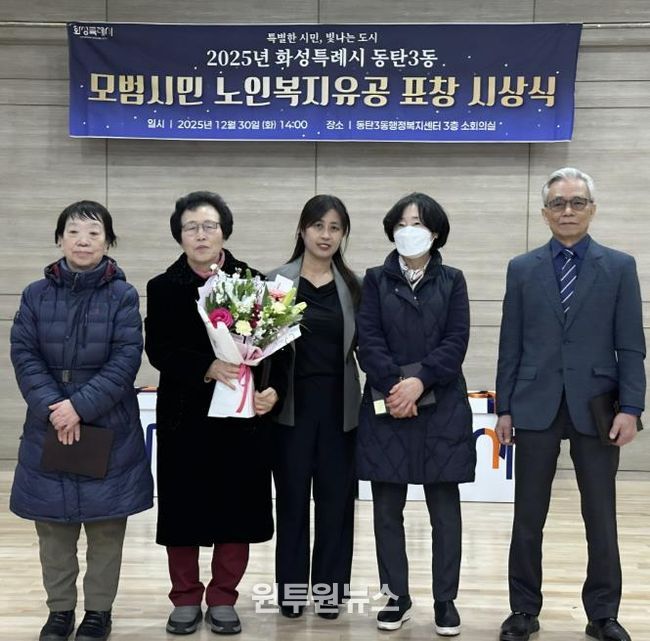 이문희 동탄3동장은 “보이지 않는 곳에서 묵묵히 봉사해 오신 어르신들께 깊은 경의를 표한다”며 “이번 시상식을 통해 어르신들의 자긍심을 높이고 후배 세대에게 존경받는 귀감이 되기를 바란다”고 말했다.