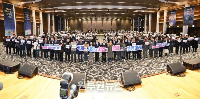 (원투원뉴스) 지난 2025년 12월 29일, 일운면 소노캄 거제 그랜드볼룸에서 ‘시민과 함께 만드는 지역-기업 상생 대토론회’가 개최됐다.
