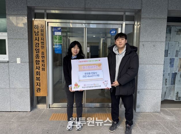 (원투원뉴스) 감일퍼스트태권도장(관장 이양성)은 지난 12월 26일 하남시감일종합사회복지관(사회복지법인 휴먼복지회 운영)에 ‘사랑의 라면트리’ 라면 117개를 전달했다.