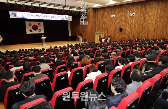 (원투원뉴스) 인천시 남동구는 2일 오전 9시 구청 대강당에서 구민과 직원 500여 명이 참석한 가운데 2025년 시무식을 열고 새해의 힘찬 출발을 알렸다.
