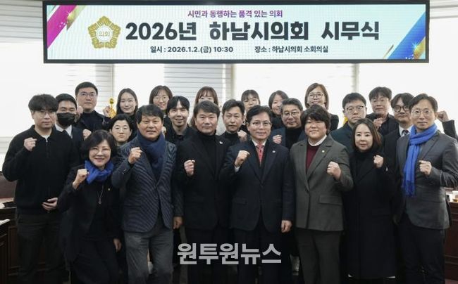(원투원뉴스) 하남시의회는 2026년 병오년(丙午年)을 맞아 2일 오전 현충탑 신년 참배에 이어 시무식을 열고 새해 의정 비전 실천 의지를 다졌다.