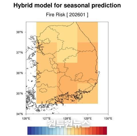 (원투원뉴스) 산림청 국립산림과학원(원장 김용관)은 1월 산불 발생 위험을 장기 예측한 결과(첨부 1), 전국적으로 ‘높음’ 단계가 전망된다고 밝혔다. 이는 과거 30년간의 1월 기록 중 8번째로 위험한 수준으로, 작은 불씨가 대형 화재로 번지지 않도록 각별한 주의가 필요하다.