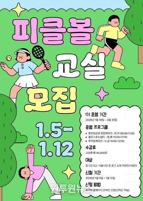 구 관계자는 “피클볼 교실이 주민의 건강을 지키는 동시에 이웃과 소통하는 활기찬 여가활동의 장이 되길 기대한다"며 "앞으로도 중구는 누구나 즐길 수 있는 생활체육 프로그램을 지속적으로 확대해 나가겠다"고 밝혔다.