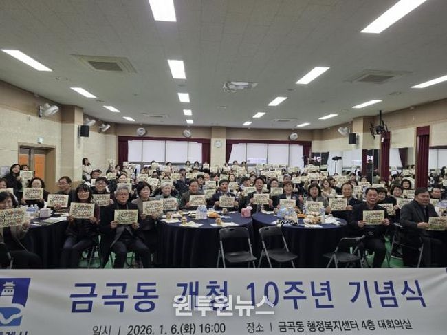 (원투원뉴스) 2026년 개청 10주년을 맞은 권선구 금곡동은 지난 6일 지역구 의원과 주민 등 100여 명이 참석한 가운데 주민자치회 및 통장협의회와 함께 10주년 기념행사를 개최했다.