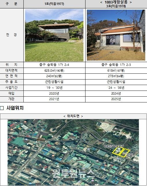 한편, ‘근대건축문화자산 재생사업’은 인천의 역사적, 건축적, 문화적 가치를 재조명하기 위해 인천도시공사가 근대건축자산을 매입 후 리모델링하여 시민에게 지역문화공간으로 제공하는 문화재생사업이다.