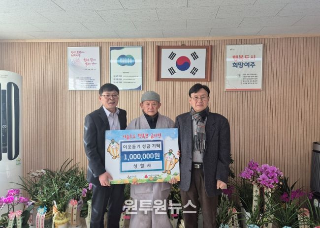 (원투원뉴스) 여주시 금사면 주록리 원적산에 위치한 대한불교 보문 조계종 성혈사가 새해를 맞아 지역사회의 어려운 이웃을 위한 따뜻한 나눔을 실천했다.