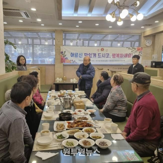 (원투원뉴스) 수원시 팔달구 화서1동은 지난 7일, 1월 생일을 맞이한 독거어르신 10명을 모시고 이교수한정식에서 '어르신 사랑의 생신상' 행사를 열었다.
