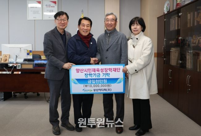 (원투원뉴스) 양산시인재육성장학재단(이사장 이희종)은 지난 9일 상신이디피(주)(대표 김일부)가 장학재단(이사장 이희종)에 장학금 1,000만원을 기탁했다고 밝혔다.