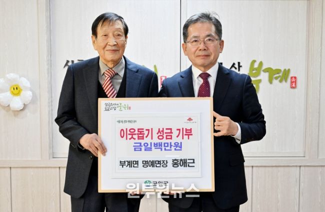 한편, 홍해근 명예면장은 부계면 남산리 출신으로 2023년부터 매년 어려운 이웃들을 위해 성금을 꾸준히 기부하여 지역 사회 기부 문화 확산에 귀감이 되고 있다.