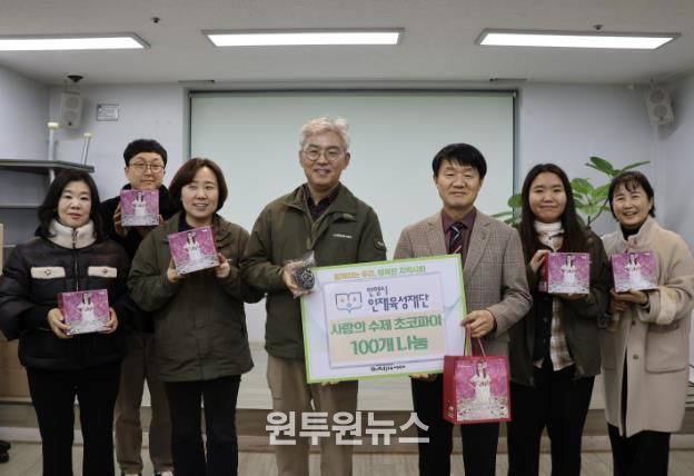 (원투원뉴스) 안양시 인재육성재단은 지난 8일 재단 내 베네치아 중강당에서 창립 15주년을 기념해 임직원이 함께하는 ‘사랑의 수제 초코파이 나눔’ 사회공헌활동을 진행했다고 12일 밝혔다.