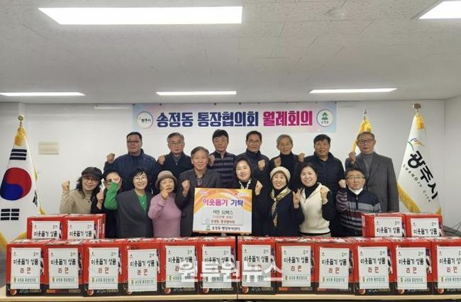 (원투원뉴스) 광주시 송정동 통장협의회는 지난 8일 지역 내 취약계층 지원을 위해 라면 50박스를 송정동 행정복지센터에 기탁했다.