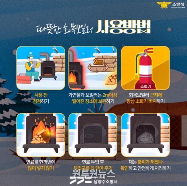 (원투원뉴스) 남양주소방서는 12일, 겨울철을 맞아 화목보일러 사용 증가에 따른 화재 예방을 위해 시민들에게 안전수칙 준수를 당부했다.