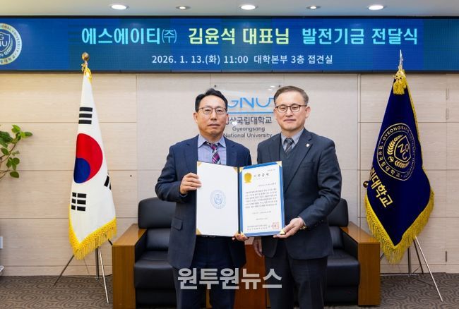 (원투원뉴스) 경상국립대학교는 1월 13일 오전 11시 대학본부 3층 접견실에서 ‘에스에이티(주) 대학발전기금 전달식’을 개최했다.