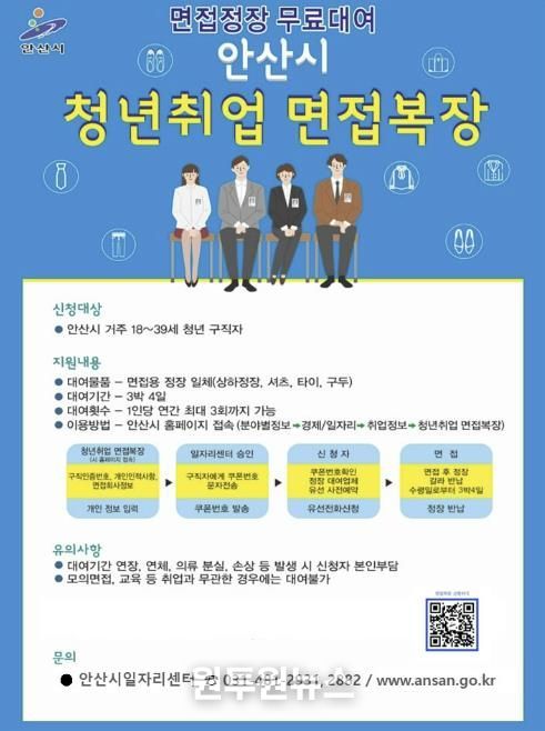 (원투원뉴스) 안산시는 청년들의 경제적 부담을 덜고, 취업 준비에 전념할 수 있도록 지원하는 ‘2026년 청년취업 면접복장 무료대여’ 사업을 재개했다고 14일 밝혔다.