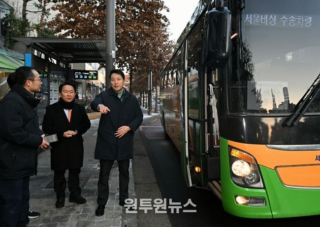 (원투원뉴스) 오세훈 서울시장이 서울 시내버스 파업 이틀째인 14일 아침, 시민 출근길 점검에 나섰다.