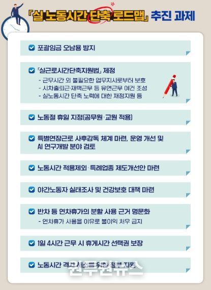 점검단은 추진단에 참여했던 노사정 및 전문가 전원이 빠짐없이 참여해 논의의 연속성을 이어가며, 노사정 공동선언의 내용을 책임 있게 이행해 나갈 계획이다. 점검단은 2026년 실천하기로 한 로드맵 추진 과제에 대한 이행점검을 수행하는 한편, 야간노동자 실태조사, 노동시간 적용제외·특례업종 현황 파악 등을 함께 논의한다.