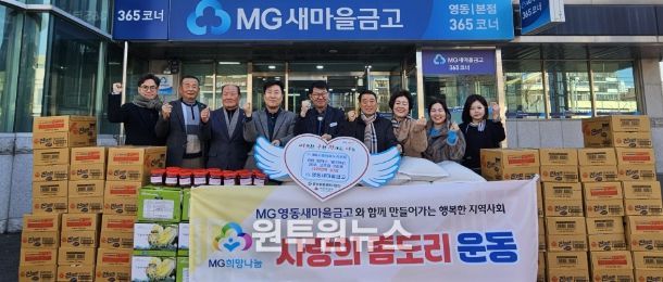 정연복 이사장은 “설 명절을 앞두고 영동새마을금고 회원님들이 새마을금고의 상부상조 정신으로 십시일반 모은 작은 정성이 큰 힘이 되어, 어려운 이웃들에게 따뜻한 위로와 희망이 되길 바란다”며, “주위에 필요한 분들께 잘 전달돼 모두가 행복한 세상이 되길 기대한다”고 밝혔다.