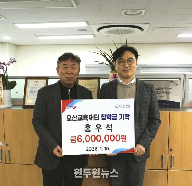 (원투원뉴스) 오산교육재단은 지난 15일 ㈜드림앤트 홍우석 대표로부터 오산시 지역 인재 육성을 위한 장학금 600만 원을 기탁받았다고 밝혔다.