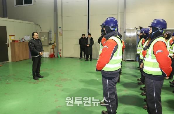 이권재 시장은 이른 아침 대행업체를 찾아 환경미화원들과 간담회를 갖고, 혹한기 작업에 따른 안전사고 예방과 건강관리의 중요성을 강조하며 현장 근무자들의 노고에 감사의 뜻을 전했다.