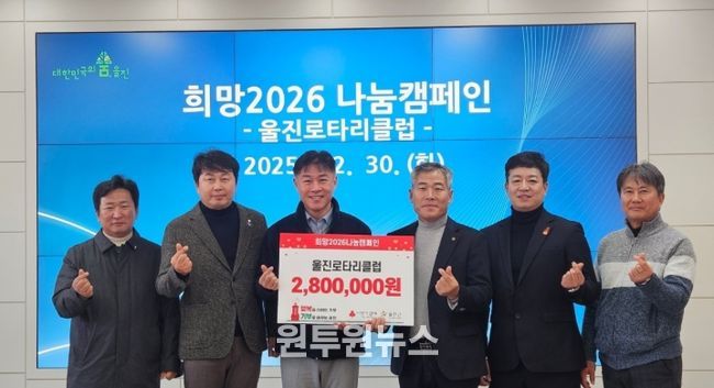 울진군 관계자는 “매년 꾸준한 나눔과 봉사로 지역사회에 큰 힘이 되어주시는 울진로타리클럽 회원 여러분께 깊이 감사드린다”며 “기탁해 주신 성금은 도움이 필요한 이웃들에게 소중히 전달하겠다”라고 밝혔다.