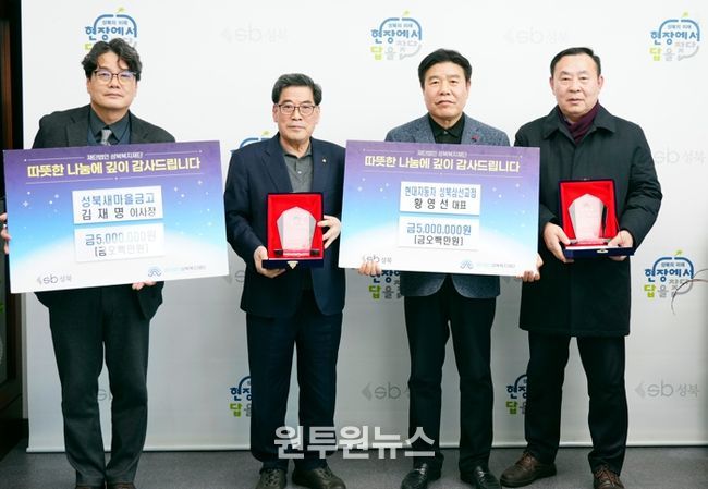 김재명 성북새마을금고 이사장과 황영선 현대자동차 성북삼선교점 대표는 “지역사회와 함께 성장해 온 기관으로서 나눔에 동참하게 되어 뜻깊게 생각한다” 며 “앞으로도 지역복지 발전을 위한 사회공헌 활동을 지속해 나가겠다”고 전했다.