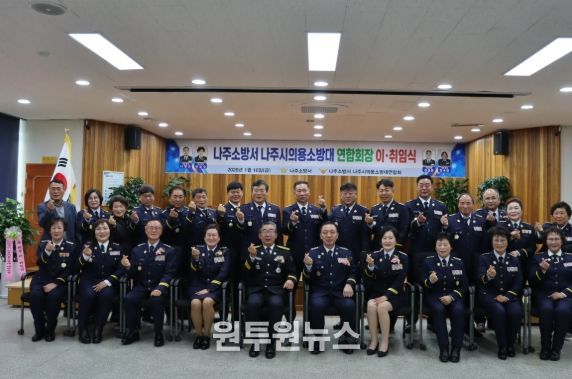 (원투원뉴스) 나주소방서는 2026년 1월 16일, 나주소방서 4층 대회의실에서 나주시 의용소방대연합회장 이·취임식을 개최했다.