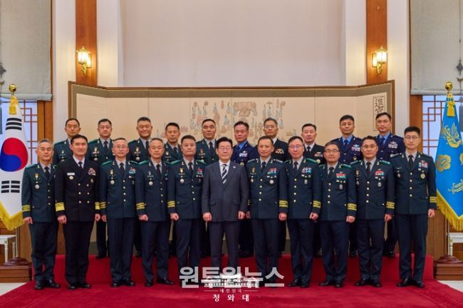 (원투원뉴스) 이재명 대통령은 오늘 오후 중장 진급 및 보직 신고, 그리고 수치 수여식을 개최했다.