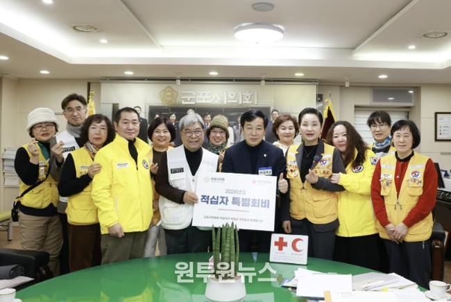 (원투원뉴스) 군포시의회가 대한적십자사 경기도지사에 2026년도 적십자 특별회비를 전달했다.