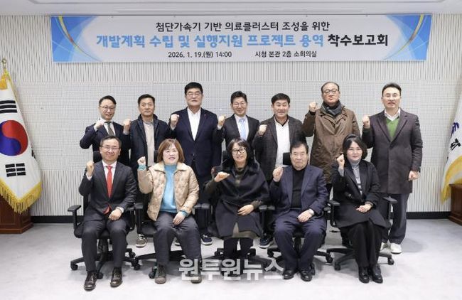 (원투원뉴스) 삼척시는 1월 19일 시청 본관에서 '첨단가속기 기반 의료클러스터 조성을 위한 개발계획 수립 및 실행지원 프로젝트 용역 착수보고회'를 개최했다.